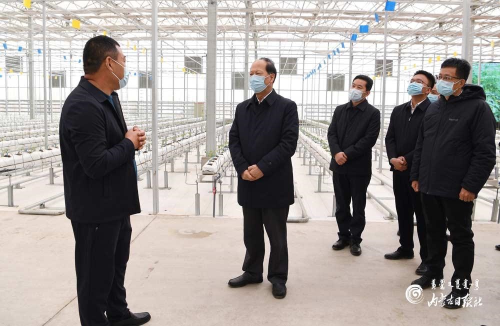 3月16日,自治區(qū)黨委書記、人大常委會主任石泰峰來到巴彥淖爾市臨河區(qū)鮮農(nóng)農(nóng)業(yè)科技園區(qū),走進(jìn)智能聯(lián)棟溫室,了解現(xiàn)代農(nóng)業(yè)運(yùn)營情況。內(nèi)蒙古日報社融媒體記者袁永紅攝