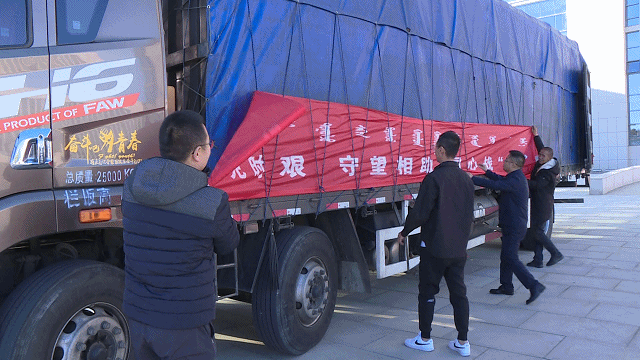 21日下午,額濟納旗東南1000公里外的鄂爾多斯市康巴什區(qū),2輛滿載消毒液、防護服、N95口罩、酒精等防疫物資,以及大米、白面、豬肉等糧食物資的大卡車,緊急馳向額濟納?! ?/p>