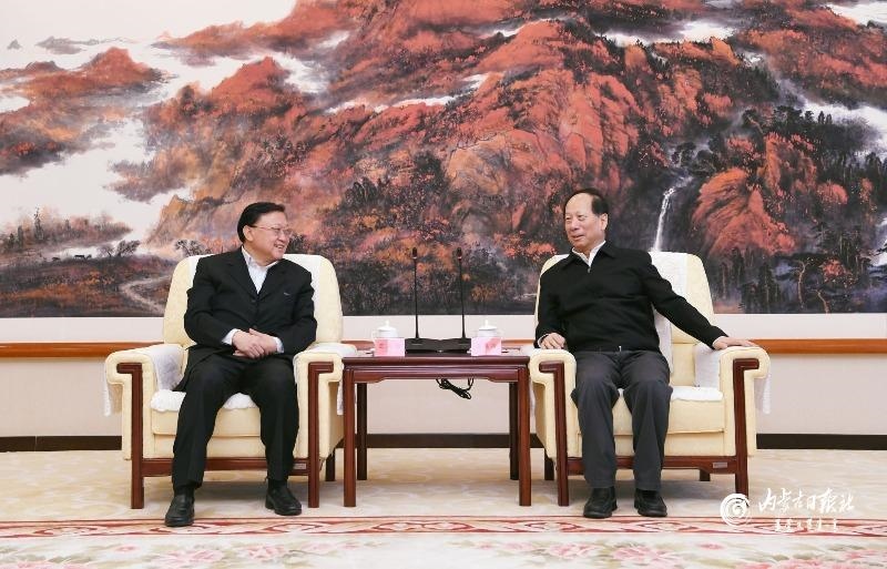 1月17日,自治區(qū)黨委書(shū)記、人大常委會(huì)主任石泰峰在呼和浩特會(huì)見(jiàn)中國(guó)交通建設(shè)集團(tuán)黨委書(shū)記、董事長(zhǎng)王彤宙。內(nèi)蒙古日?qǐng)?bào)社融媒體記者袁永紅攝