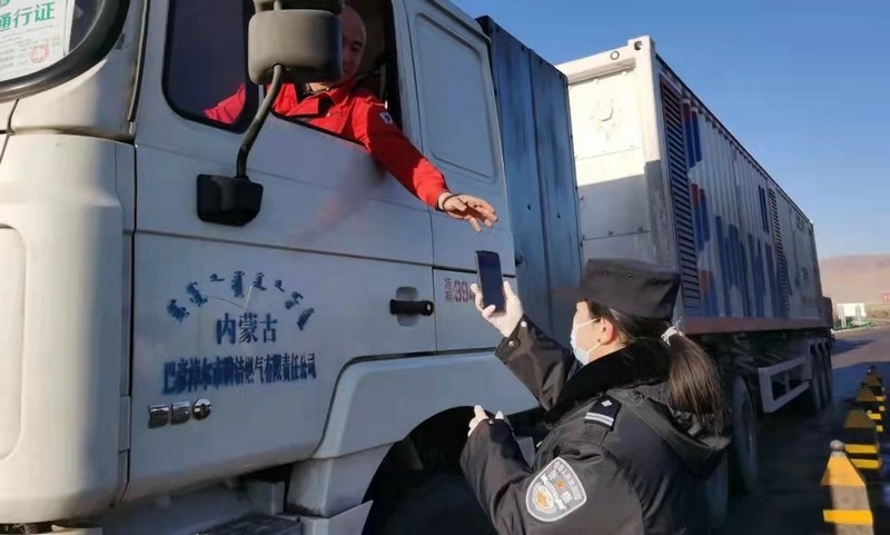 在巴彥淖爾市烏拉特中旗牧羊海疫情防控服務(wù)點(diǎn),工作人員正對(duì)來(lái)往的車輛人員進(jìn)行檢測(cè)、掃碼、詢問(wèn)、登記……