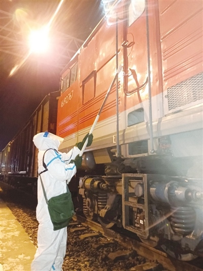 田潤(rùn)澤告訴記者,“通過(guò)‘無(wú)接觸’查驗(yàn)、磁條封控車(chē)門(mén),避免了跨境列車(chē)司機(jī)與邊檢、海關(guān)工作人員的直接接觸,最大限度降低交叉感染的風(fēng)險(xiǎn),確保司機(jī)在國(guó)內(nèi)停留的數(shù)小時(shí)內(nèi)不下車(chē)、不與外界接觸?!?/p>