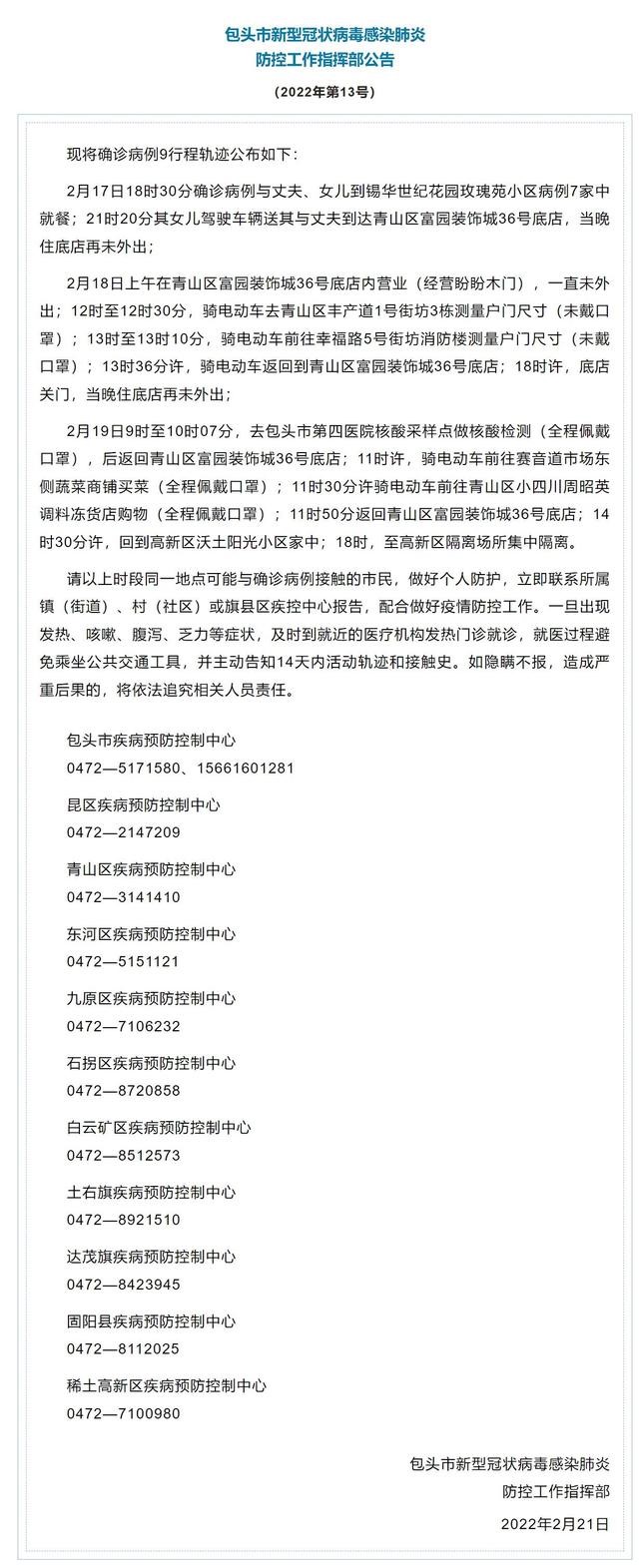 內(nèi)蒙古包頭市公布一例確診病例行程軌跡