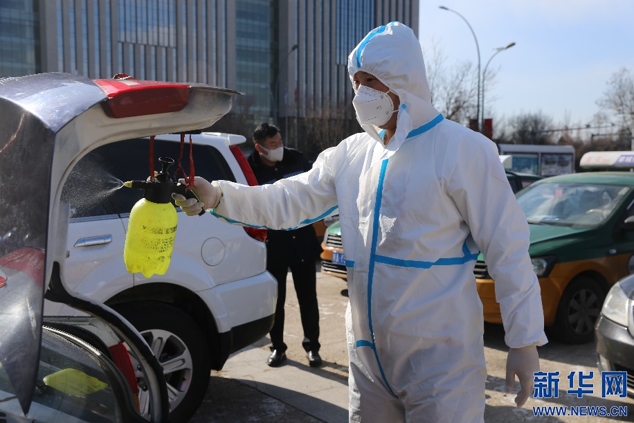 2月21日晚10點,連日的降溫讓2月份的呼和浩特寒意十足。39歲的出租車司機籍東斌即將結束一天的工作,這是近幾日收工最早的一天。稍后他將去指定地點,脫下包裹了大半天的防護服,做完消殺工作后回到指定地點休息。新華網(wǎng)發(fā) 李倩攝