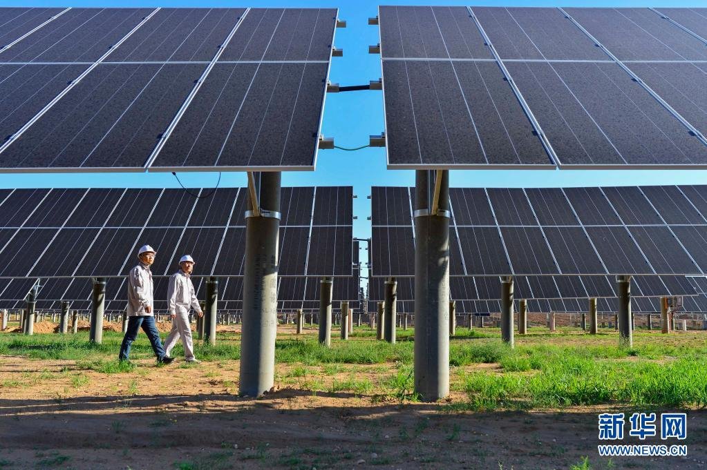鄂爾多斯市伊金霍洛旗通過光伏項目治理采煤沉陷區(qū)生態(tài)。新華網(wǎng)發(fā)(王正 攝)