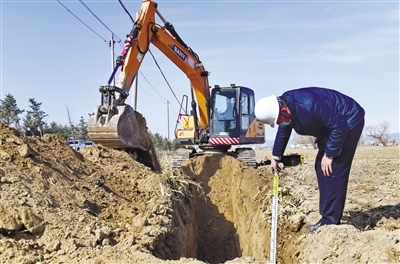 3月21日,工作人員駕駛挖掘機(jī)在呼和浩特市賽罕區(qū)郜獨(dú)利村農(nóng)田里開挖滴灌管道。據(jù)了解,賽罕區(qū)2022年共實(shí)施高標(biāo)準(zhǔn)農(nóng)田建設(shè)項(xiàng)目3.5萬畝,總投資6300萬元。項(xiàng)目于3月21日全面開工建設(shè),建成后將形成“地平整、土肥沃、旱能灌、澇能排、渠相連、路相通、林成網(wǎng)”的新型高標(biāo)準(zhǔn)農(nóng)田,預(yù)計(jì)糧食畝均增產(chǎn)20%以上,水資源利用率提高30%以上。(王磊攝)