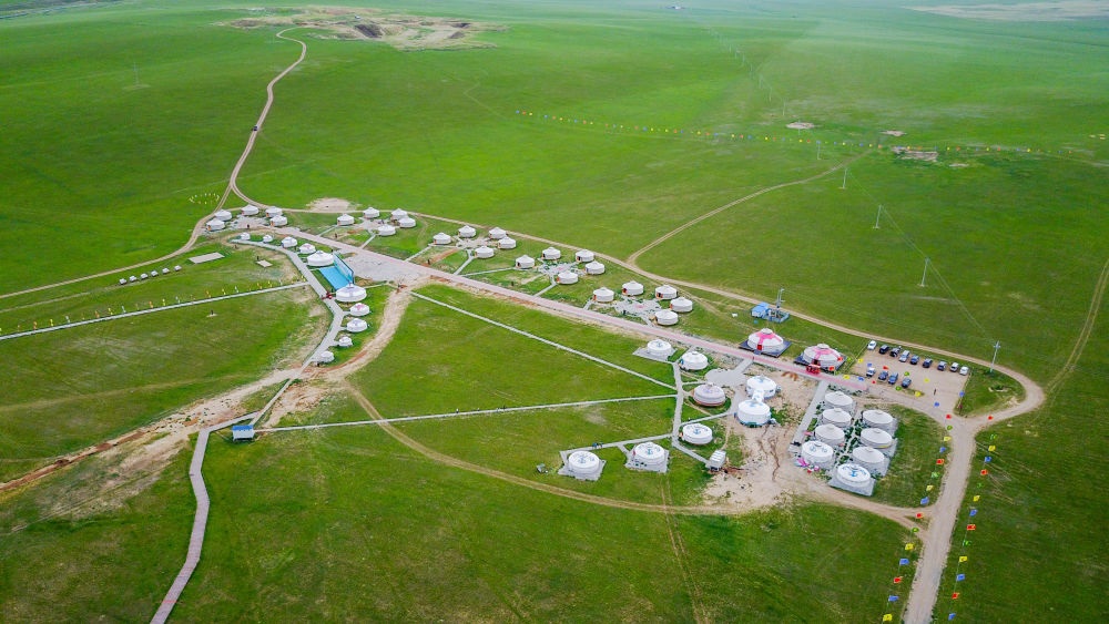 這是內(nèi)蒙古錫林郭勒盟寶力根蘇木的一處那達(dá)慕會(huì)場(2017年7月21日攝,無人機(jī)照片)。新華社記者連振攝