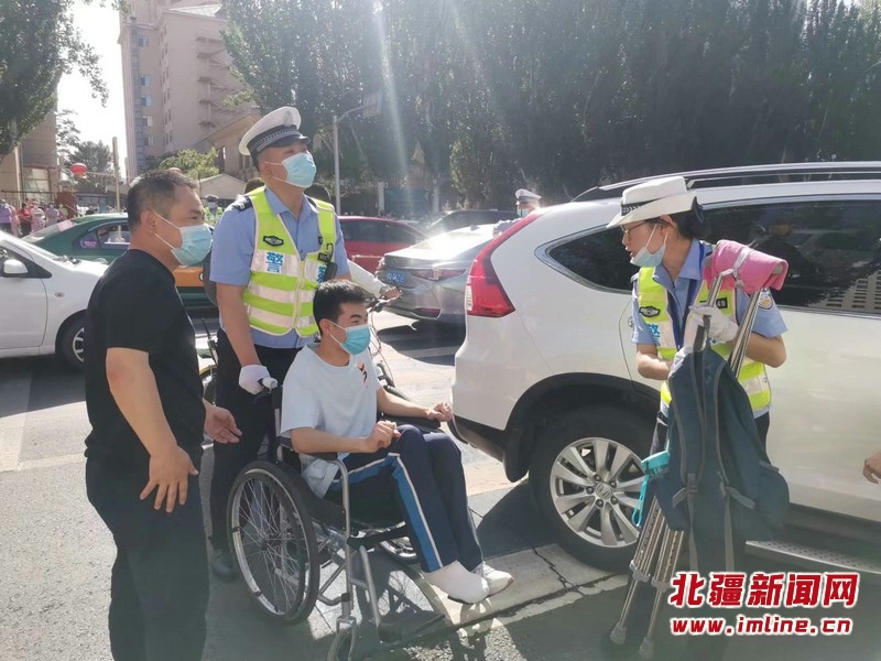 現(xiàn)場最讓感動的是,一位腳扭傷的考生,在兩名交警的幫助下坐上輪椅進(jìn)入考場?!坝辛怂麄兊膸椭瑴p少了我們的焦慮,心情輕松了很多,而且今天早早就來到了考場?!笨忌议L介紹,昨天看考場時(shí),交警同志得知孩子的腳扭傷后,今天特意趕來護(hù)送學(xué)生進(jìn)入考場。