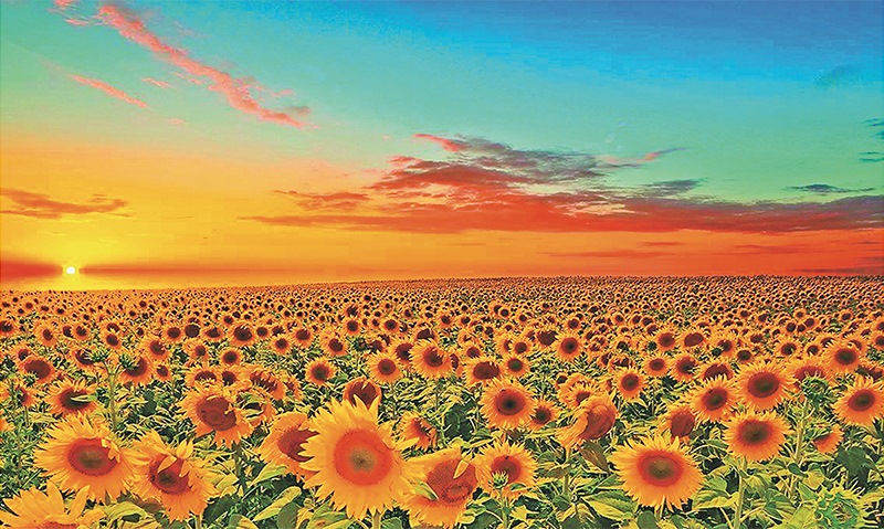 全國(guó)葵花籽產(chǎn)量約70%來自內(nèi)蒙古。圖為巴彥淖爾市向日葵種植區(qū)。 內(nèi)蒙古日?qǐng)?bào)社供圖