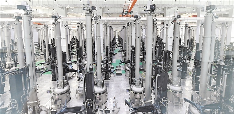 “這個車間出來的單晶硅棒是用在光伏領(lǐng)域的,切成硅片后,應(yīng)用于下游的電池片、組件、電站。”內(nèi)蒙古中環(huán)晶體材料有限公司技術(shù)總監(jiān)王林告訴記者。