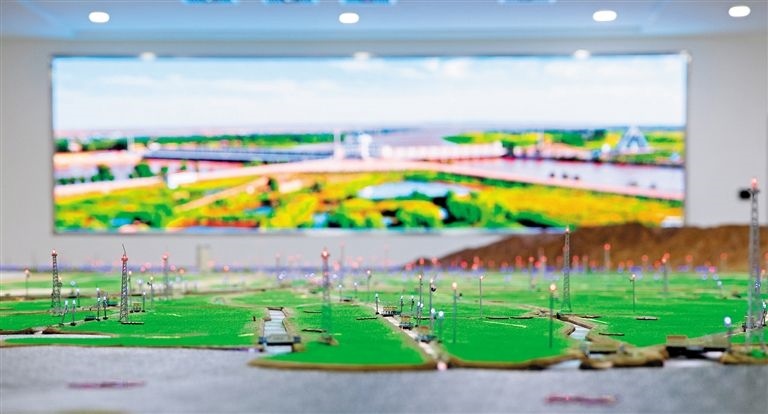 河套灌區(qū)是我國(guó)3個(gè)特大型灌區(qū)之一,也是我國(guó)重要的糧油生產(chǎn)基地,現(xiàn)已形成完整的7級(jí)灌排體系,引黃灌溉面積達(dá)1000多萬(wàn)畝。160平方米的實(shí)體實(shí)時(shí)數(shù)字沙盤是微縮版的“河套灌區(qū)”,可以清晰地看到整個(gè)灌區(qū)的灌排體系。