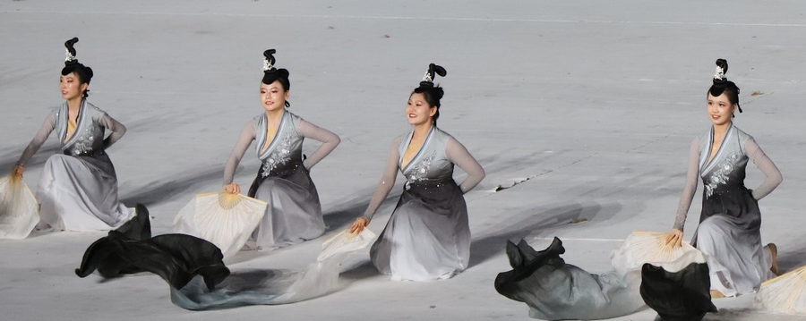 入場儀式結束后,在雄壯的國歌聲中,鮮艷的五星紅旗冉冉升起,在體育中心上空迎風飄揚。期盼的眼神,真摯的祝福,蕩漾在每個人的心間。開幕式文體展演隨后正式拉開帷幕。