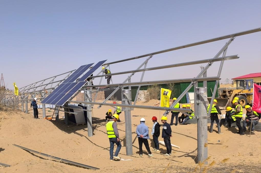 記者在新華林場民樂作業(yè)區(qū)看到,與其他作業(yè)區(qū)的造林治沙方式相比,這里既沒有栽樹,也沒有種草,而是在沙地里“栽”下了一個個水泥樁。葛文斌告訴記者:“這里是防沙治沙和風(fēng)電光伏一體化工程項(xiàng)目區(qū)。‘栽’水泥樁就是為后期安裝光伏板、建設(shè)光伏電站做準(zhǔn)備。在光伏板上發(fā)電的同時,我們還可以在光伏板下種植固沙植物,幫助地表植被恢復(fù),達(dá)到既能發(fā)電‘生金’又能實(shí)現(xiàn)沙化土地縮減的雙重功效。”(記者李云平、侯維軼)