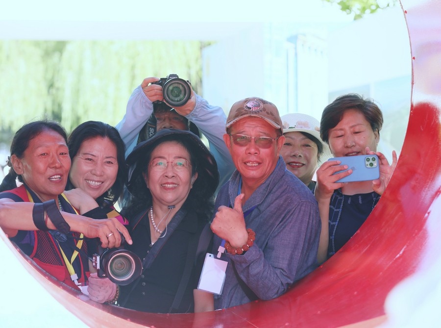 游客在呼和浩特攝影周參觀拍照