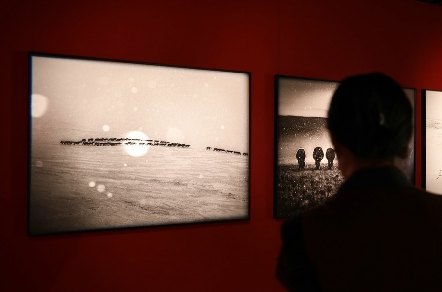 游客在參觀“蒙古馬精神”阿音攝影作品展