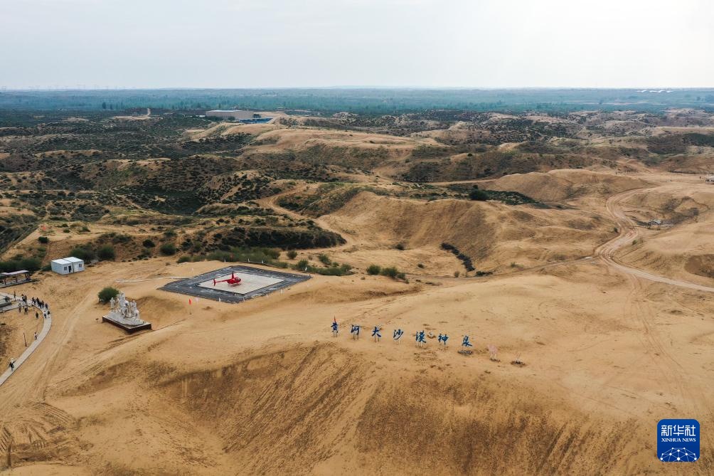 ??這是9月18日拍攝的位于鄂爾多斯市準(zhǔn)格爾旗境內(nèi)的庫布其沙漠神泉旅游區(qū)(無人機(jī)照片)。