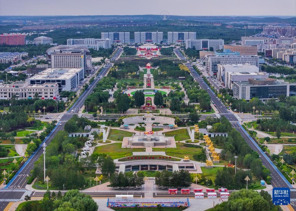 ???這是9月19日拍攝的鄂爾多斯市康巴什區(qū)中軸線(無人機(jī)照片)。
