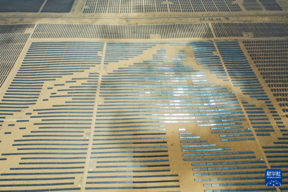 在內(nèi)蒙古自治區(qū)鄂爾多斯市境內(nèi)的庫布其沙漠里,一排排光伏板整齊地排列著,像是一幅藍色畫布在沙海中熠熠生輝。然而在過去,“黃沙遮天日,飛鳥無棲樹”是人們對這片沙海的印象。
