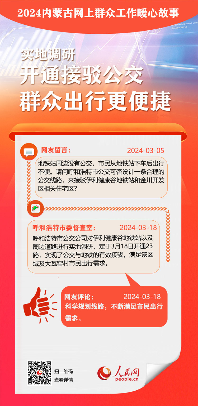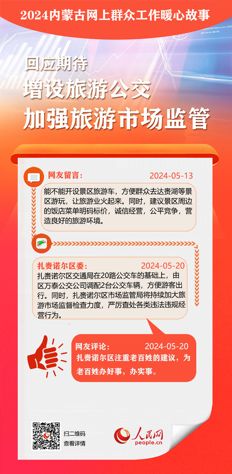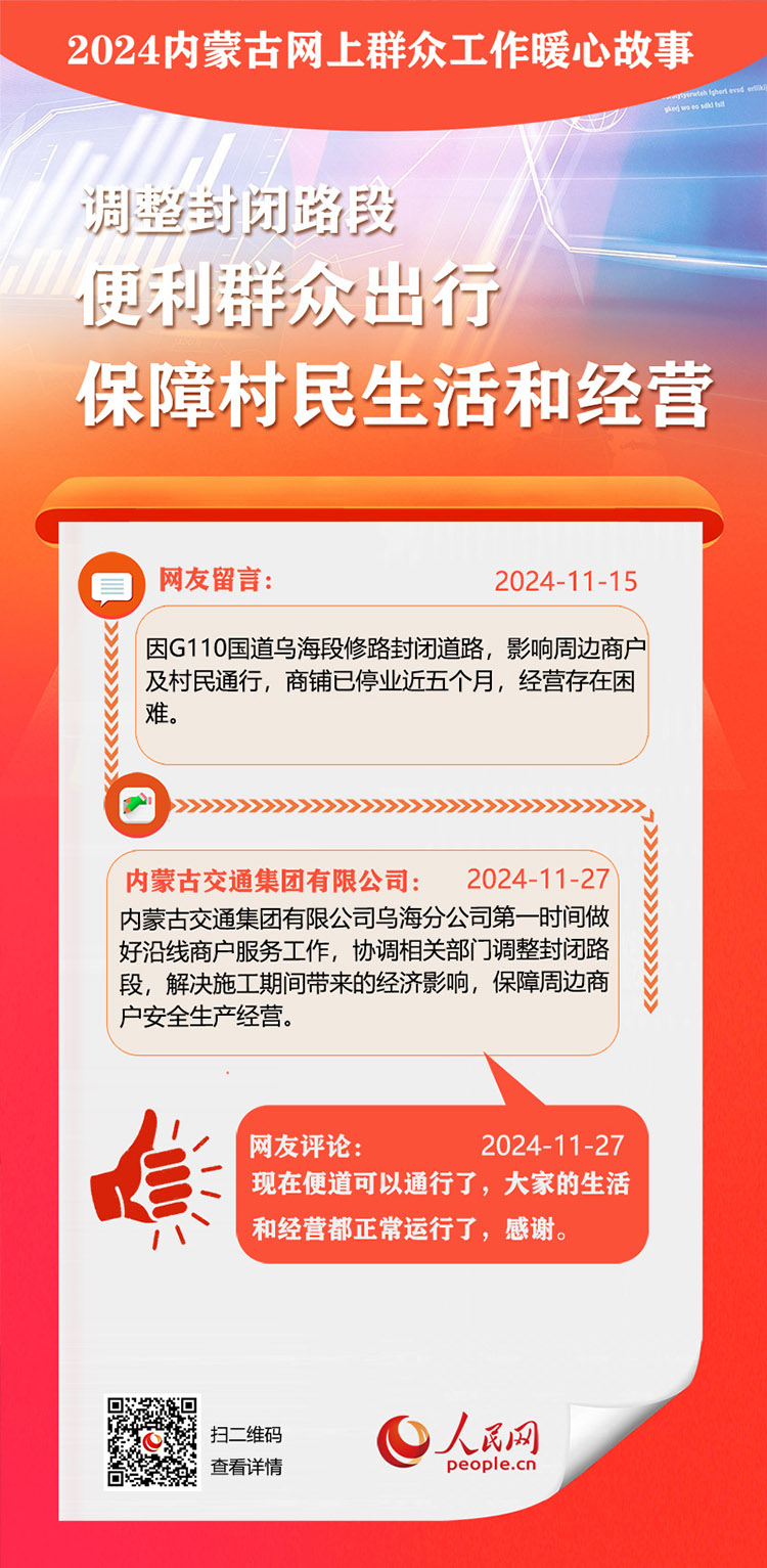 走好走實(shí)網(wǎng)上群眾路線 用心用情為民服務(wù)辦實(shí)事。依托人民網(wǎng)“領(lǐng)導(dǎo)留言板”,內(nèi)蒙古自治區(qū)各級(jí)黨委、政府著力解決網(wǎng)民反映的熱點(diǎn)難點(diǎn)。2024年,一批群眾關(guān)切的急難愁盼問(wèn)題得到及時(shí)解決。人民網(wǎng)內(nèi)蒙古頻道推出特別策劃,盤點(diǎn)過(guò)去一年內(nèi)蒙古網(wǎng)上群眾工作那些暖心事?!?/p>