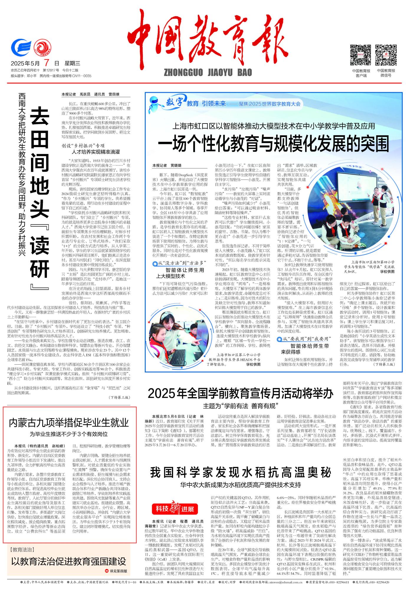 2025年5月7日《中國教育報》第1版刊發(fā)了《內(nèi)蒙古九項舉措促畢業(yè)生就業(yè) 為畢業(yè)生推送不少于3個有效崗位》的文章,報道了為有效應對高校畢業(yè)生就業(yè)面臨的新形勢、新變化,內(nèi)蒙古自治區(qū)黨委教育工作領導小組近日下發(fā)通知,推出九項舉措,全力護航高校畢業(yè)生高質(zhì)量就業(yè)之路。