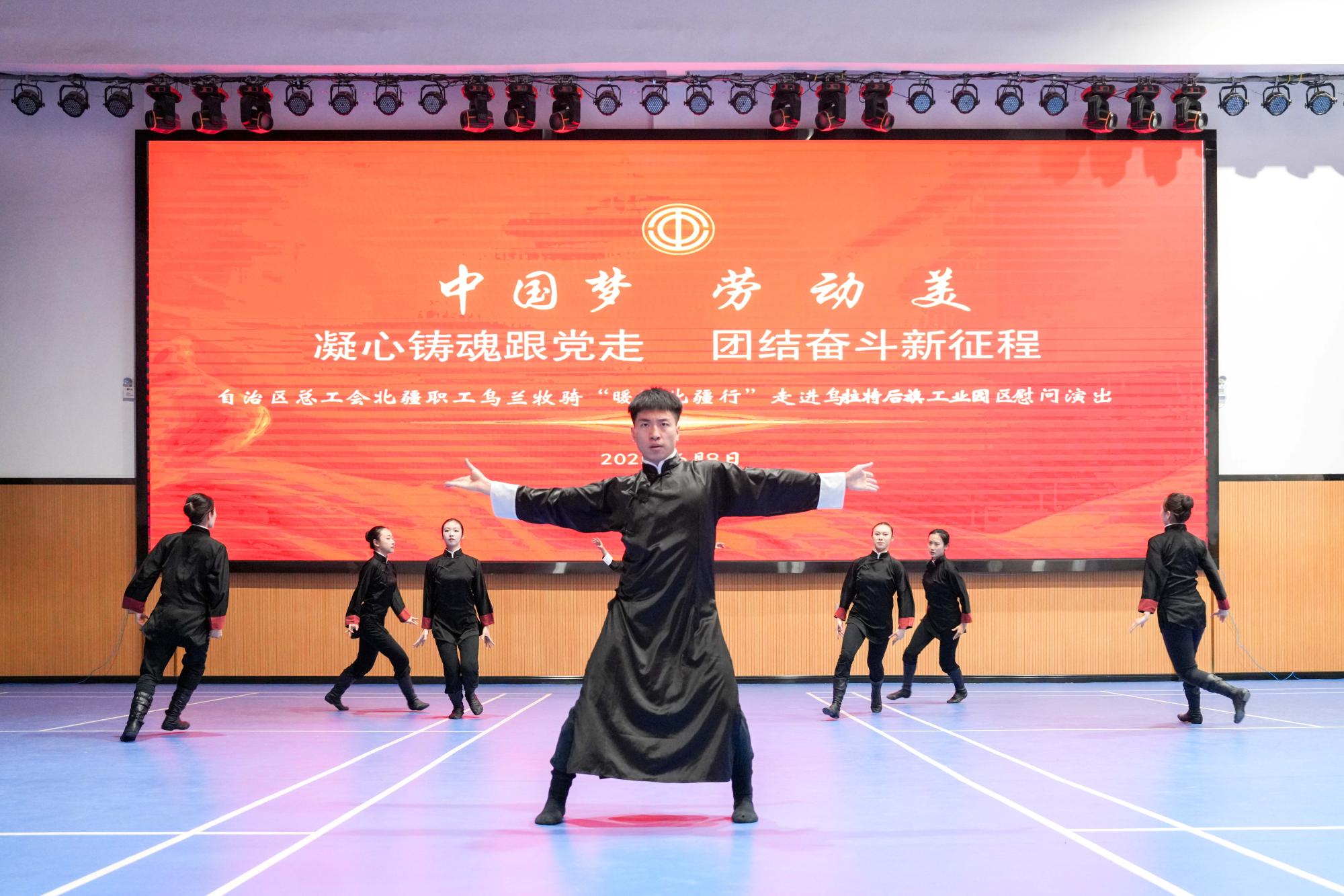 內(nèi)蒙古藝術(shù)學院烏蘭牧騎藝術(shù)團不僅走進部隊哨所,還深入烏拉特草原深處。他們驅(qū)車抵達烏拉特后旗,在工業(yè)園區(qū)進行慰問演出,將精心編排的歌舞、器樂等節(jié)目送到邊疆建設(shè)一線的群眾面前。