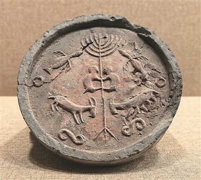 遺址展示館內(nèi),戰(zhàn)國時(shí)期樹木鳥獸紋瓦當(dāng)、漢代“富樂未央,子孫宜昌”銘文磚、北魏角抵瓦當(dāng)?shù)冉ㄖ?gòu)件,訴說著古城的千年繁華。樹木鳥獸紋瓦當(dāng)正中有一株挺拔的樹,弧形樹冠向上舒展,枝葉兩側(cè)對稱雕刻振翅飛鳥,樹干上的兩只猴子呈攀緣姿態(tài)相對而立,樹根部對飾兩只山羊,造型質(zhì)樸。內(nèi)蒙古師范大學(xué)北疆文化研究中心主任陳永志介紹:“樹冠飛鳥、猴子攀樹題材源自中原地區(qū)靈魂升天、王侯將相等文化元素,而對羊紋又具有草原游牧民族風(fēng)格。這件瓦當(dāng)生動(dòng)體現(xiàn)了中原文化與北方草原文化的交融?!?/p>