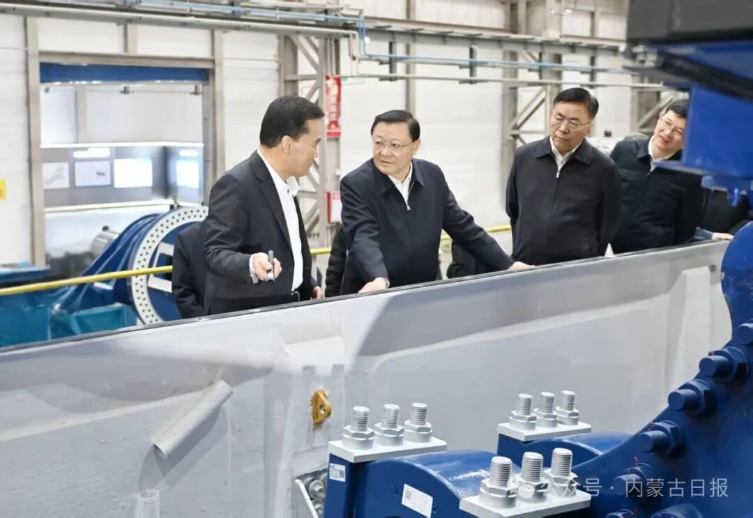 10月27日,自治區(qū)黨委書記王偉中來到明陽新能源智能制造產(chǎn)業(yè)園調(diào)研,邊看邊與企業(yè)負(fù)責(zé)人交流,了解產(chǎn)業(yè)發(fā)展、項(xiàng)目建設(shè)、生產(chǎn)運(yùn)行和市場行情等情況。草原云·內(nèi)蒙古新聞網(wǎng)記者 馬建兵 攝