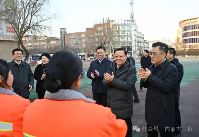 2月13日,自治區(qū)黨委書記、人大常委會(huì)主任王偉中來到萬正廣場(chǎng)環(huán)衛(wèi)站,看望慰問辛勤工作的環(huán)衛(wèi)工人。草原云·內(nèi)蒙古新聞網(wǎng)記者 馬建兵 攝