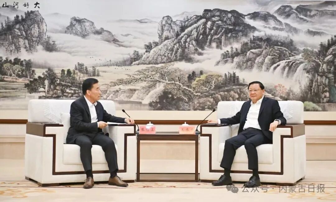 4月16日下午,自治區(qū)黨委書記、人大常委會主任王偉中在呼和浩特會見明陽新能源投資控股集團有限公司黨委書記、董事長張傳衛(wèi)一行。草原云·內(nèi)蒙古新聞網(wǎng)記者