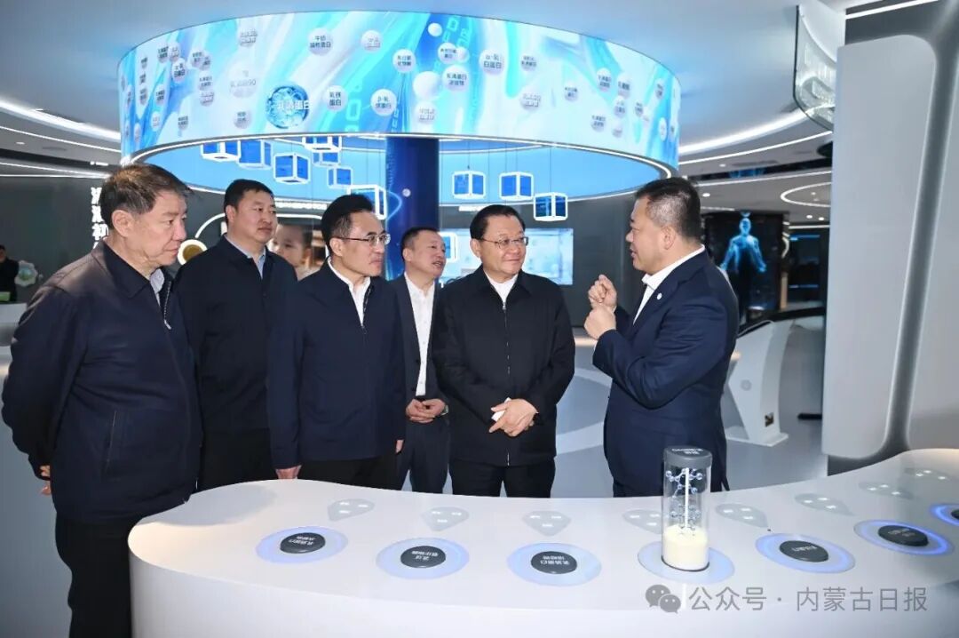 4月22日,自治區(qū)黨委書記、人大常委會(huì)主任王偉中在蒙牛集團(tuán)聽取企業(yè)全球布局、技術(shù)研發(fā)等情況介紹。草原云·內(nèi)蒙古新聞網(wǎng)記者 馬建兵 攝