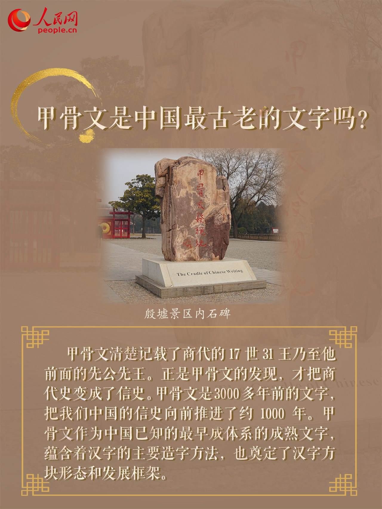 近日,由中央網(wǎng)信辦網(wǎng)絡(luò)傳播局指導的“寫意中國——探尋漢字起源”網(wǎng)上主題宣傳活動正在開展。記者走進位于河南安陽的殷墟遺址,一眼閱盡千年,探尋中華文明的古老密碼,感受遠古甲骨文的獨特魅力。常說的“一片甲骨驚天下”指的是什么?什么地方被學術(shù)界譽為“中國最早的圖書館”?中國歷史上第一位巾幗女將軍是誰?跟隨記者實地探訪,一起來了解殷墟的文化密碼!