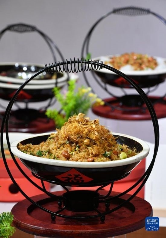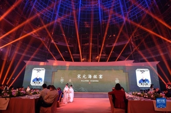 當(dāng)日,福建泉州石獅市舉辦“閩菜地標(biāo)美食城市”授牌暨“宋元海絲宴”推介儀式?!八卧=z宴”以南宋福建泉州石獅籍美食家林洪著作《山家清供》為還原藍(lán)本,兼收閩南名菜,集山珍、海味于一席,將菜品、宴席與宋元器皿、場(chǎng)景、樂曲、詩詞等融合,展現(xiàn)宋元時(shí)期世界海洋商貿(mào)中心獨(dú)特的美食文化。新華社記者 魏培全 攝