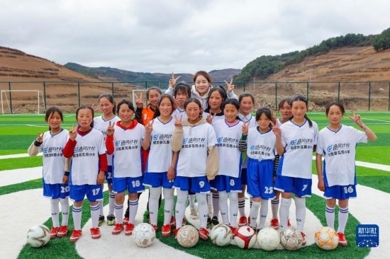 四川省涼山州昭覺縣瓦吾小學(xué)坐落于海拔約2700米的大涼山上,因?yàn)榈乩砦恢闷А⒁荒晁募驹旗F繚繞而得名“云端小學(xué)”。校長曲比史古2018年組建女足球隊(duì),希望通過足球讓這些大山里的女孩子收獲快樂,也獲得更多人生可能性。過去幾年,孩子們都是在一片“手工自制”的泥地球場上訓(xùn)練,經(jīng)常受傷。得知瓦吾小學(xué)的情況后,中國足協(xié)、支付寶以及女足國腳們決定一起為這支校園女足隊(duì)捐贈(zèng)一座“玫瑰夢想球場”。2022年底,全國第二座中國女足主題球場——“玫瑰夢想球場”在大涼山上落成。