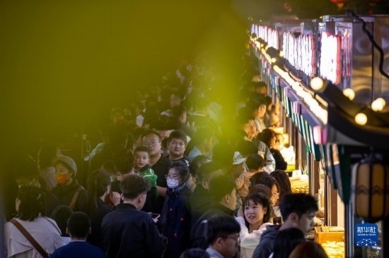5月2日,游客在寧夏銀川市金鳳區(qū)閱彩城中街參觀游覽。