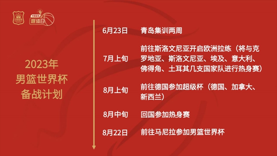 談到中國男籃備戰(zhàn)世界杯的具體規(guī)劃時,徐濟(jì)成表示:“球隊將于6月23日在青島開啟為期兩周的集訓(xùn);7月上旬前往斯洛文尼亞開啟歐洲拉練,將與克羅地亞、斯洛文尼亞、埃及、意大利、佛得角、土耳其幾支國家隊進(jìn)行熱身賽;8月上旬前往德國參加超級杯,對手包括德國、加拿大、新西蘭;8月中旬回國參加1-2場熱身賽后,將前往馬尼拉參加男籃世界杯?!?/p>
