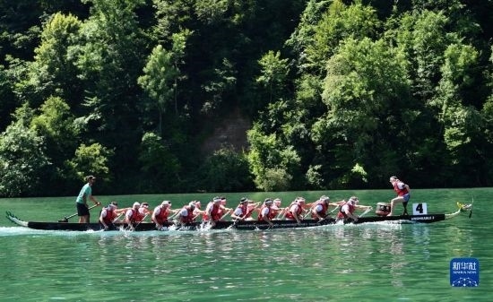 6月25日,在瑞士埃格利紹,人們參加賽龍舟活動。
