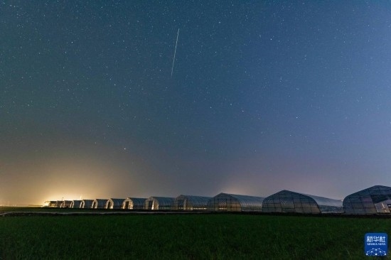 這是6月25日夜晚在黑龍江省富錦市萬畝水稻公園內(nèi)拍攝的稻田和星空(長時(shí)間曝光)。