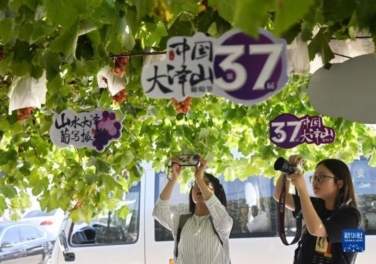 近日,山東省平度市大澤山鎮(zhèn)3.5萬多畝葡萄陸續(xù)成熟,當?shù)嘏e辦的葡萄節(jié)吸引了眾多市民和游客前來采摘和游玩。據(jù)了解,大澤山鎮(zhèn)作為北方重要的葡萄集中種植地之一,擁有葡萄品種300余個,年產葡萄5萬余噸、年產值約7億元。