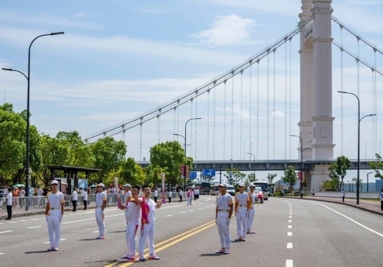 杭州第19屆亞運(yùn)會舟山站火炬?zhèn)鬟f專項(xiàng)組常務(wù)副組長李進(jìn)城介紹,整個(gè)線路全程融入了海、港、船、橋等多種海洋元素,通過現(xiàn)代與歷史的交錯(cuò)融合、文旅味與山海味的交相輝映,全方位展現(xiàn)了“海上花園城 自由貿(mào)易港”的大美場景。