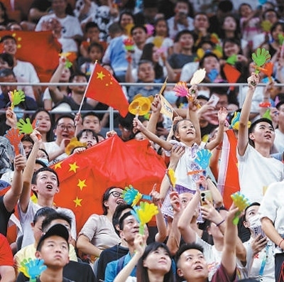 武術(shù)比賽中,不少代表團運動員選擇中國風音樂作配樂,一招一式盡顯中華優(yōu)秀傳統(tǒng)文化魅力;在射擊賽場,中國代表團選手林雅茜領(lǐng)獎時,現(xiàn)場觀眾和中外運動員為她唱起生日歌,友愛的氛圍不斷蔓延。賽場內(nèi)外,人們用行動詮釋了和而不同、美美與共。