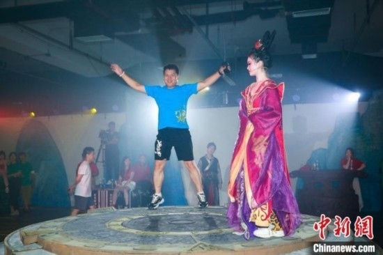 《猴王問世》導(dǎo)演郝博介紹,這部戲提煉《山海經(jīng)》背景而創(chuàng)作,以金、水、木、火、土五行相生的順序,對(duì)應(yīng)白、藍(lán)、綠、紅、黃五個(gè)顏色,以及悲、恐、怒、喜、思五種情緒,與此相應(yīng)還有“后羿射日”“大禹治水”“刑天斷首”“夸父逐日”“女媧補(bǔ)天”五段神話故事?!爱?dāng)下年輕人的生活節(jié)奏快、壓力大,我們希望觀眾成為‘玩家’,通過‘參演’音樂劇《猴王問世》,釋放壓力,丟掉情緒垃圾。”郝博說。