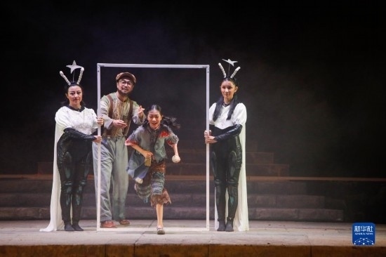 8月29日晚,演員在蘭州音樂廳表演新版紅色兒童劇《大豆謠》。