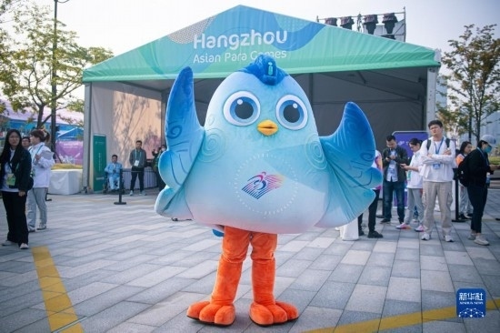 10月16日,杭州亞殘運(yùn)會吉祥物“飛飛”在開村儀式上。新華社記者 江漢 攝