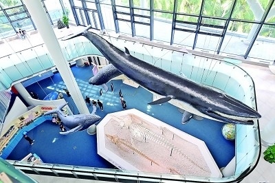 “南海鯨靈——南海鯨類標(biāo)本展”展區(qū)一角。中國(guó)(海南)南海博物館提供