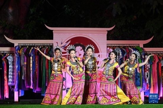 10月22日在海南省五指山市拍攝的民族時裝“村秀”重陽特別專場活動現(xiàn)場。