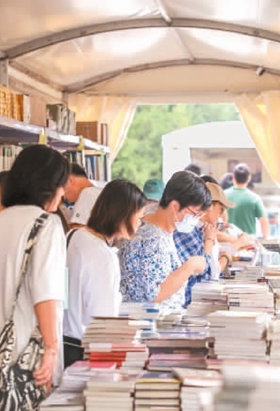 游客在2023“我與地壇”北京書市現(xiàn)場(chǎng)選購(gòu)書籍。本報(bào)記者 蔣雨師攝