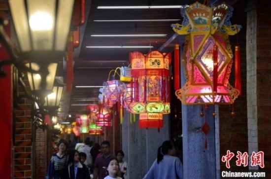 圖為2月20日晚,泉州中山路騎樓兩側(cè),花燈流光溢彩,美不勝收。中新網(wǎng)記者 張斌 攝
