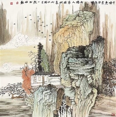 千峰競(jìng)秀白云開(中國(guó)畫)胡一龍作