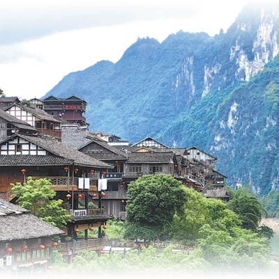 龔灘鎮(zhèn)小銀村,吊腳樓群依山就勢(shì)。本報(bào)記者姜峰攝
