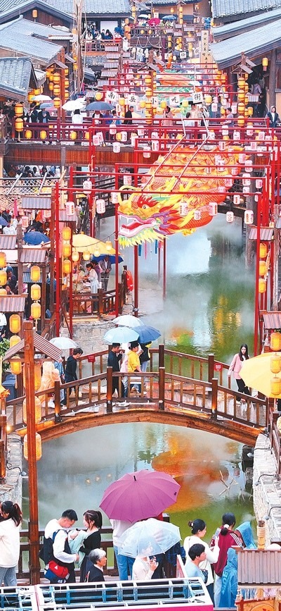 龍門浩老街上,幾名外地游客沿著青石臺(tái)階漫步至老街最高點(diǎn)——攬?jiān)屡_(tái),遠(yuǎn)眺渝中半島。這條位于重慶市南岸區(qū)南濱路中段的老街,面朝長(zhǎng)江,背依南山,開(kāi)埠文化、巴渝文化等文化底蘊(yùn)深厚。近年來(lái),經(jīng)過(guò)保護(hù)與修繕,這里不僅恢復(fù)了歷史風(fēng)貌,還增添了現(xiàn)代時(shí)尚氣息。古色古香的街道兩旁,新潮的商鋪、餐館和咖啡館為市民游客休閑購(gòu)物提供便利和全新體驗(yàn)?!案惺軙r(shí)光交錯(cuò)的美妙”,成為這里的一大魅力。數(shù)據(jù)顯示,自發(fā)展全域旅游以來(lái),龍門浩老街所在的龍門浩街道已接待游客近4000萬(wàn)人次,實(shí)現(xiàn)旅游收入276.8億元,龍門浩老街還成功創(chuàng)建第二批國(guó)家級(jí)夜間文旅消費(fèi)聚集區(qū)。