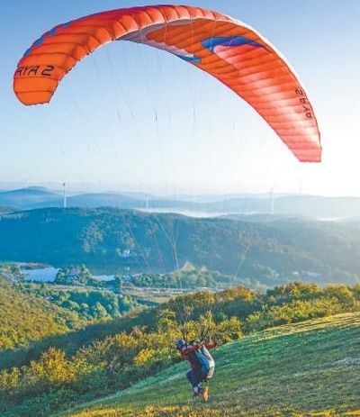 2024年滑翔傘定點世界杯總決賽在湖北荊門舉行,選手在比賽中。吳 君 張?zhí)祚磾z影報道